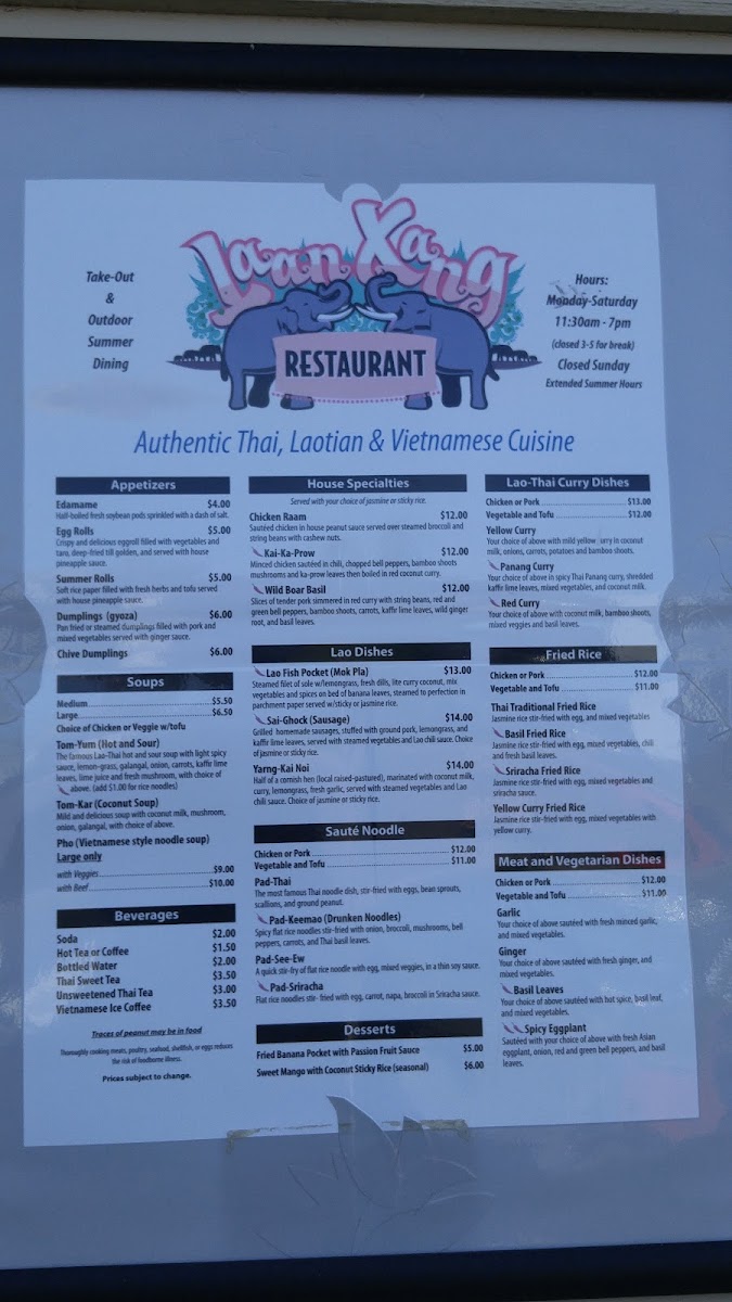 Welcome to Laan-Xang Cafe, a hidden gem nestled in the heart of Belfast, Maine. This quaint eatery offers an intimate dining experience with just a few tables, perfect for a cozy meal or quick takeout. The menu is a celebration of Lao cuisine, featuring delectable dishes such as the aromatic Lao Fish Pocket, flavorful SaiGhock sausage, and YarngKai Noi, each crafted with fresh ingredients that highlight authentic flavors.
